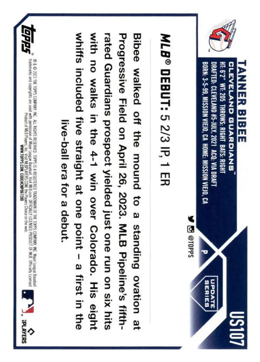 2023 Topps Update Series #US107 Tanner Bibee NM-MT Cleveland Guardians Baseball Card