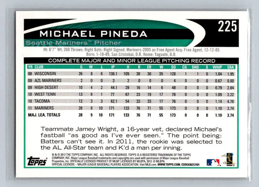2012 Topps #225b Michael Pineda Seattle Mariners