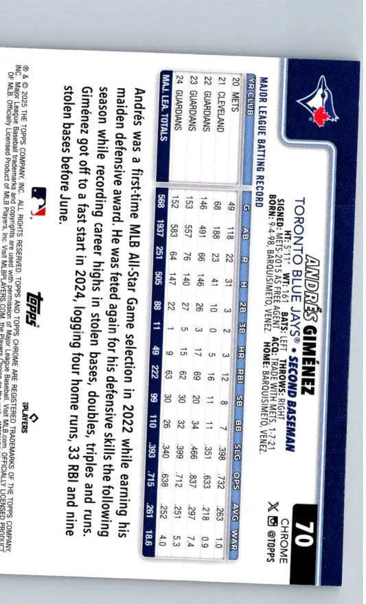 2025 Topps Chrome #70 Andrés Giménez Sepia Refractors