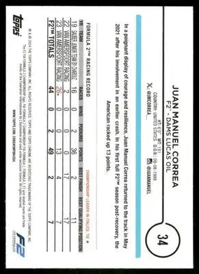 2024 Topps Chrome F1 Juan Manuel Correa #34 Auto Racing