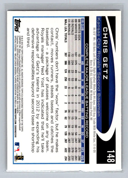 2012 Topps #148a Chris Getz Kansas City Royals
