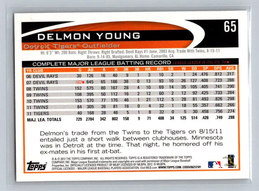 2012 Topps #65b Delmon Young Detroit Tigers