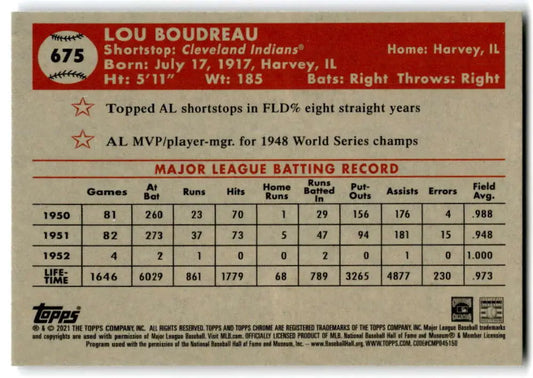 2021 Topps Chrome Platinum Anniversary #675 Lou Boudreau NM-MT Cleveland Indians Baseball Card