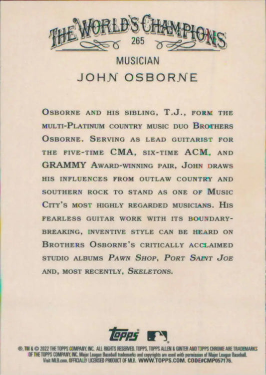 2022 Topps Allen and Ginter Chrome #265 John Osborne NM-MT Baseball Card