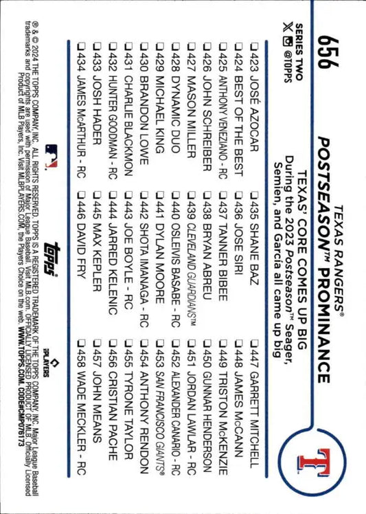 2024 Topps #656 Postseason Prominence NM-MT Texas Rangers Baseball Card