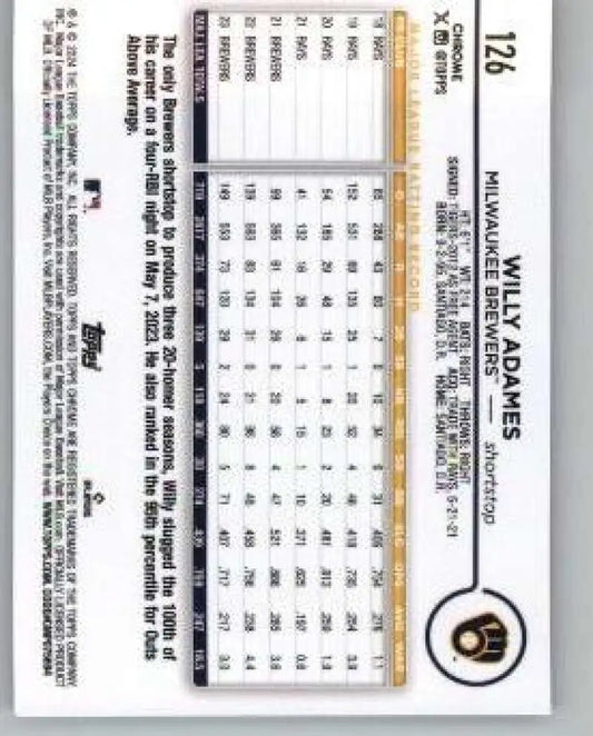 2024 Topps Chrome #126 Willy Adames NM-MT Milwaukee Brewers Baseball Card
