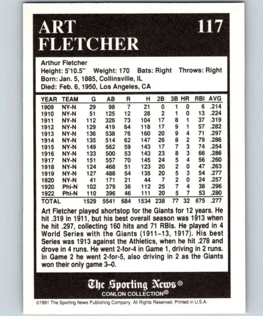 1991 Conlon Collection #117 Art Fletcher/'27NY EX Excellent New York Yankees Baseball Card