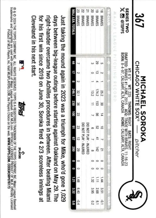 2024 Topps #367 Michael Soroka NM-MT Chicago White Sox Baseball Card