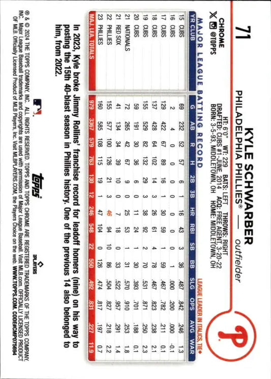 2024 Topps Chrome #71 Kyle Schwarber NM-MT Philadelphia Phillies Baseball Card