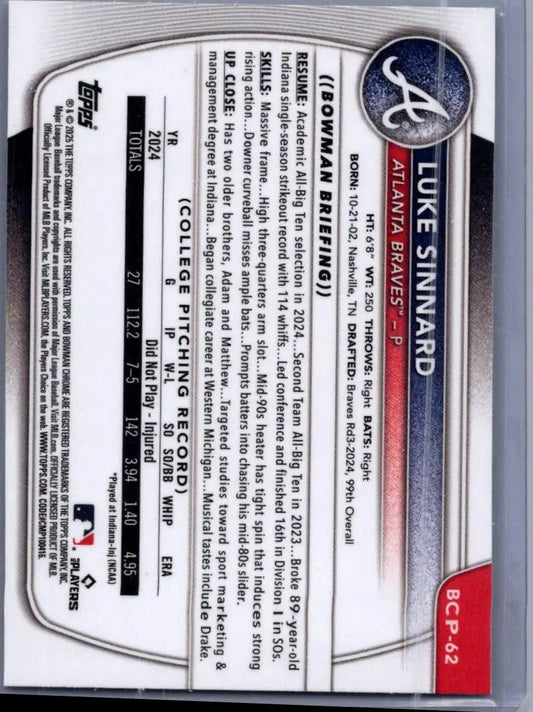 2025 Bowman #BCP-62 Luke Sinnard Chrome Prospects