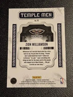 2023-24 Panini Phoenix #6 Zion Williamson Temple Men