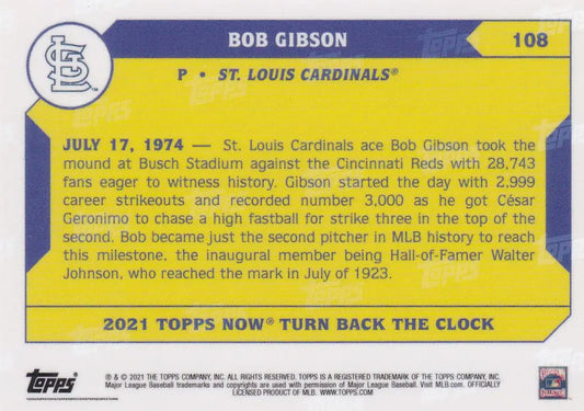 2021 TURN BACK THE CLOCK #108 BOB GIBSON- ST LOUIS CARDINALS