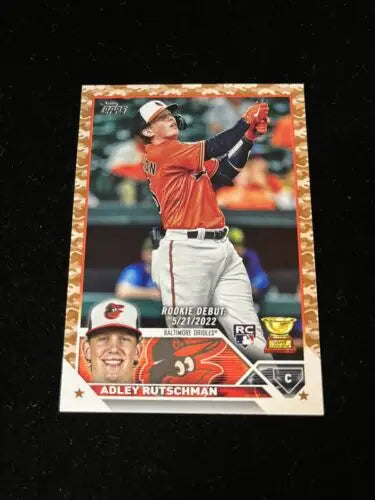 ADLEY RUTSCHMAN 2023 Topps Update #US180 Memorial Day Camo Rookie Debut RC #/25
