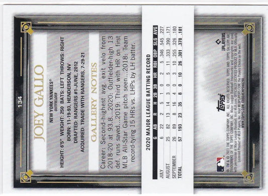 2021 Topps Gallery #134 Joey Gallo New York Yankees