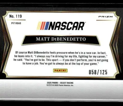 2025 Panini Select #119 Matt DiBenedetto Maroon Prizms #/125