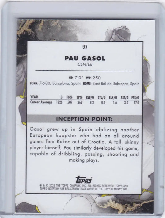 2025 TOPPS INCEPTION #97 PAUL GASOL 13/50- LOS ANGELES LAKERS