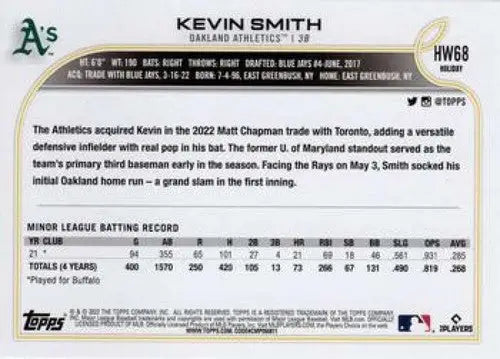 2022 Topps Holiday #HW68 Kevin Smith NM-MT RC Rookie Athletics ID:48149