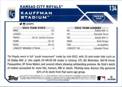 2023 Topps #134 Kansas City Royals NM-MT Bobby Witt Jr. ID:49535