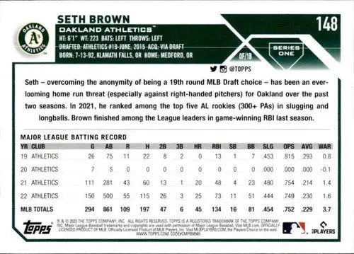 2023 Topps #148 Seth Brown NM-MT Athletics ID:49548