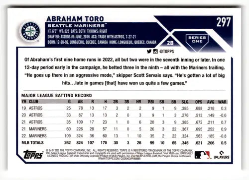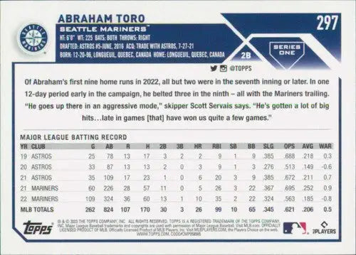 2023 Topps #297 Abraham Toro NM-MT Mariners ID:49746