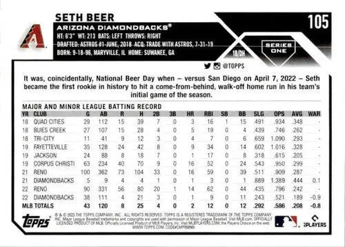 2023 Topps #105 Seth Beer NM-MT Diamondbacks ID:49756