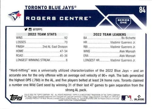 2023 Topps #84 Toronto Blue Jays NM-MT ID:49625