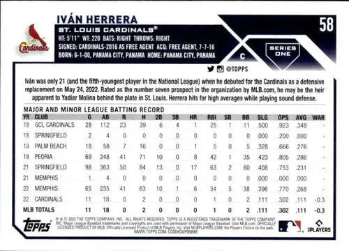 2023 Topps #58 Ivan Herrera NM-MT RC Rookie Cardinals ID:49547