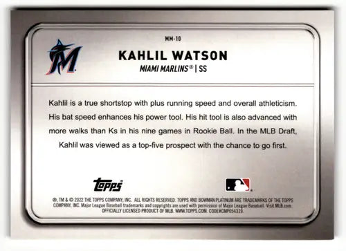 2022 Bowman Platinum Minted in Merit #MM-10 Kahlil Watson NM-MT Marlins ID:51650