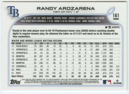 2022 Topps Chrome #161 Randy Arozarena NM-MT Rays ID:51624