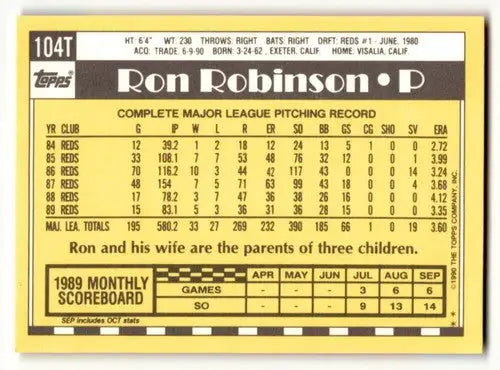 1990 Topps Traded #104T Ron Robinson Milwaukee Brewers Baseball Card ID:53946