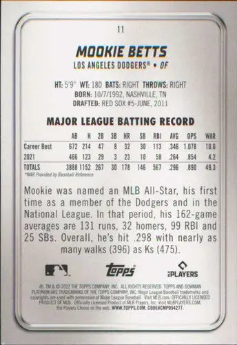 2022 Bowman Platinum #11 Mookie Betts NM-MT Dodgers ID:51673