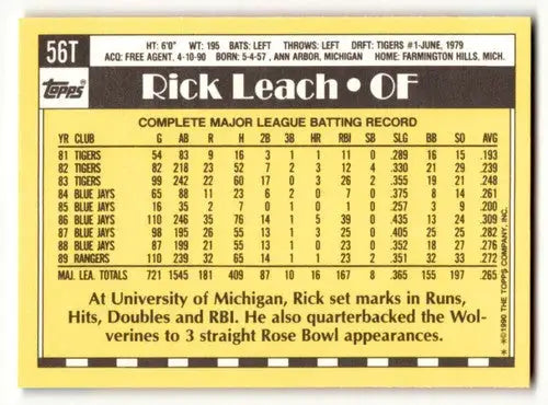 1990 Topps Traded #56T Rick Leach San Francisco Giants Baseball Card ID:53970