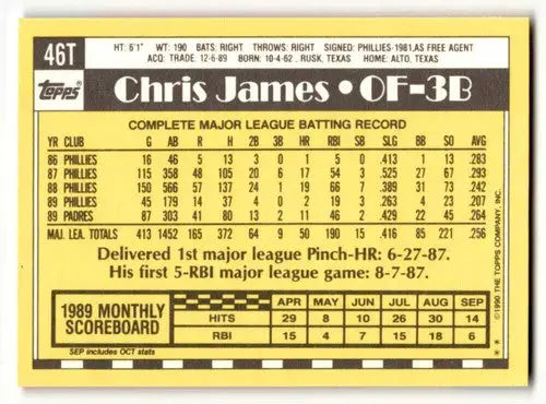 1990 Topps Traded #46T Chris James Cleveland Indians Baseball Cards ID:53973