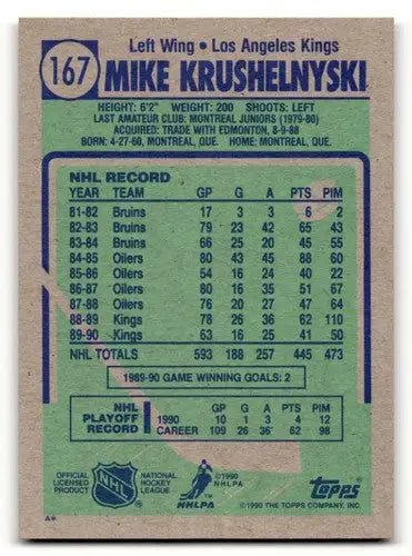 1990 Topps #167 Mike Krushelnyski Los Angeles Kings Hockey Cards EX/ ID:55517