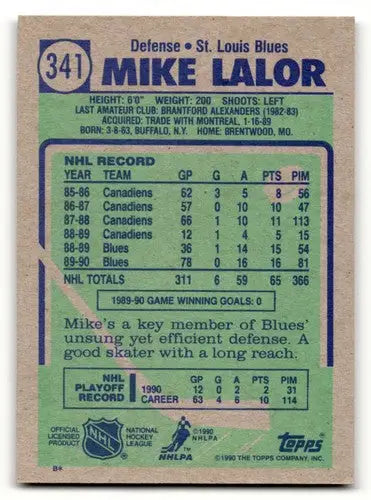 1990 Topps #341 Mike Lalor St. Louis Blues Hockey Cards NM Near Mint ID:55530