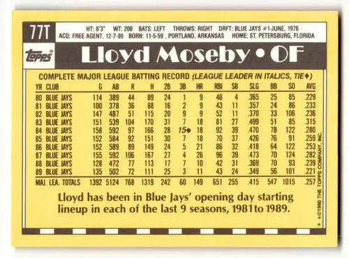1990 Topps Traded #77T Lloyd Moseby Detroit Tigers Baseball Cards NM ID:53982