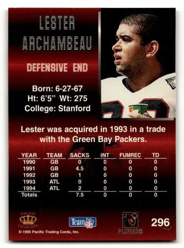 1995 Pacific #296 Lester Archambeau Atlanta Falcons Football Cards N ID:55602