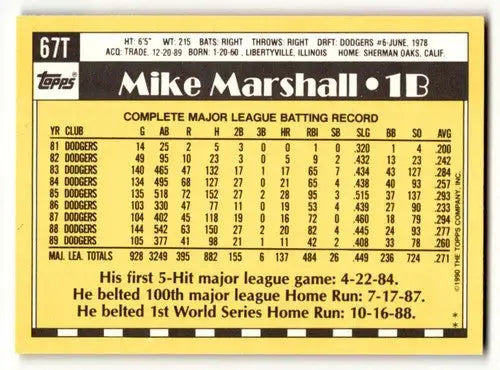 1990 Topps Traded #67T Mike Marshall New York Mets Baseball Cards NM ID:53980