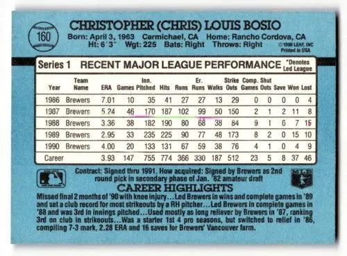 1991 Donruss #160 Chris Bosio Milwaukee Brewers Baseball Cards EX/NM ID:57716