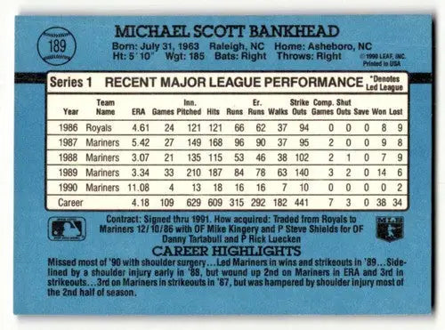 1991 Donruss #189 Scott Bankhead Seattle Mariners Baseball Cards EX/ ID:57696