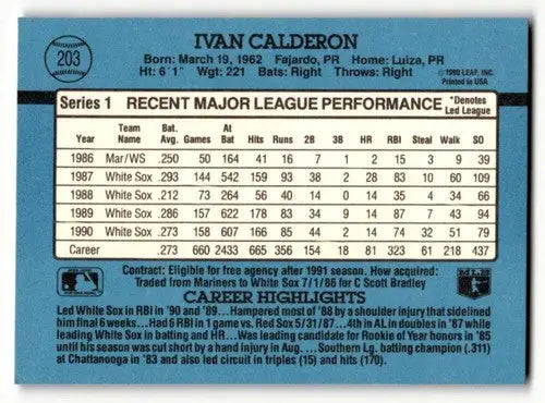 1991 Donruss #203 Ivan Calderon Chicago White Sox Baseball Cards EX/ ID:57734