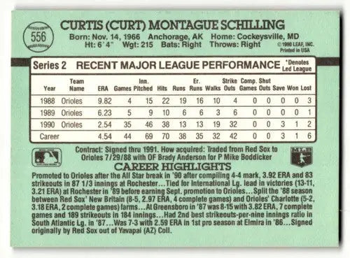 1991 Donruss #556 Curt Schilling Baltimore Orioles Baseball Cards EX ID:57677