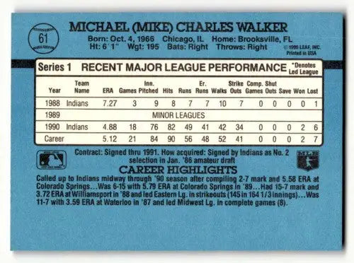 1991 Donruss #61 Mike Walker Cleveland Indians Baseball Cards EX/NM ID:57694