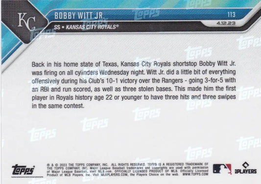 2023 TOPPS NOW #113 BOBBY WITT JR- KANSAS CITY ROYALS