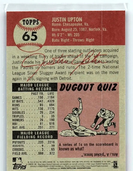 2016 Topps Archives #65 Justin Upton NM-MT Tigers 1953 Design ID:1528