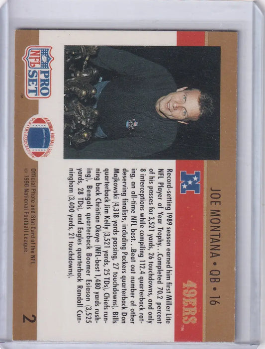 1990 Pro Set #2 Joe Montana - San Francisco 49ers