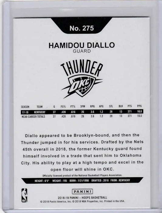 2018-19 Panini NBA Hoops #275 Hamidou Diallo Oklahoma City Thunder