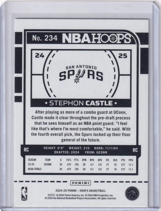 2024-25 Panini NBA Hoops #234 Stephon Castle - San Antonio Spurs