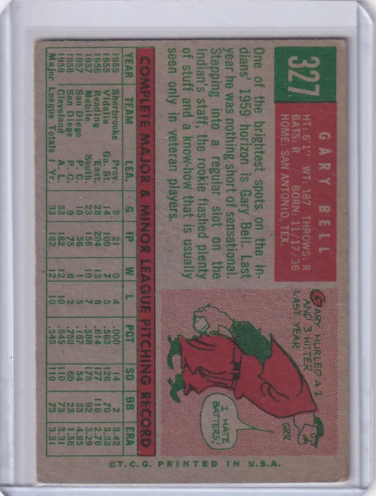 1959 Topps Baseball #327 Gary Bell - Cleveland Indians RC