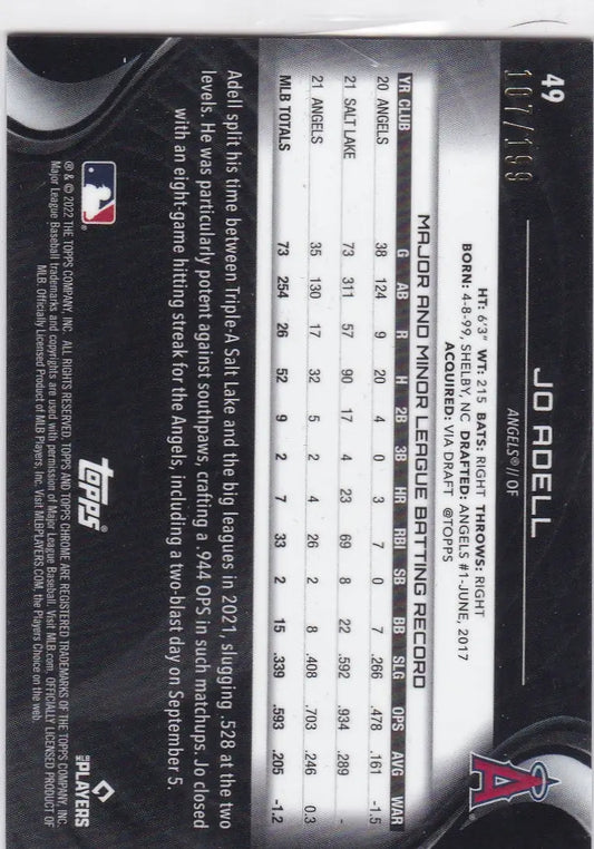 2022 Topps Chrome Black #49 Jo Adell 107/199 Los Angeles Angels